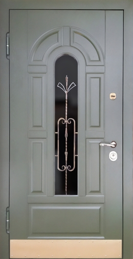 Металлическая дверь «термо» МДФ с отбойником, стеклом и решеткой Арт-436